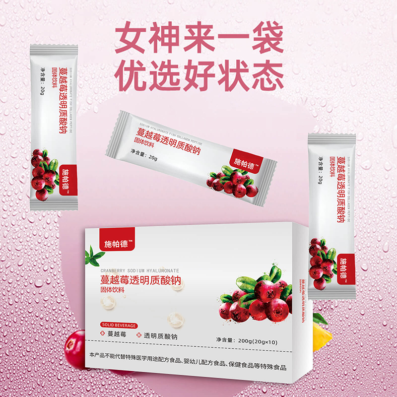 【产品名称】蔓越莓透明质酸钠固体饮料